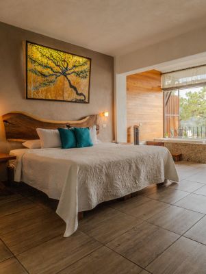 Escápate a un refugio de romance y lujo en nuestra Habitación Premium King, con balcón privado y vista al lago. Disfruta de momentos inolvidables en tu tina de hidromasaje, contemplando los atardeceres de Valle de Bravo.