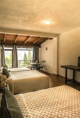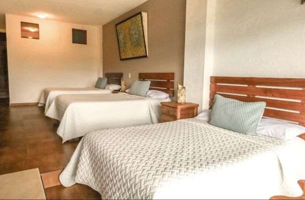 Disfruta de la comodidad y el espacio en nuestra Habitación Familiar, equipada con tres camas matrimoniales, ideal para familias o grupos que buscan compartir momentos especiales en Valle de Bravo.