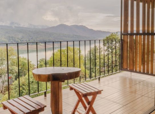 Vive momentos inolvidables en nuestra Habitación Superior Doble, con balcón privado y vistas al atardecer sobre el lago, ideal para relajarte y disfrutar de la magia de Valle de Bravo.