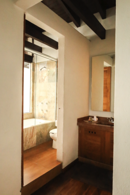 Disfruta de momentos únicos en tu tina de hidromasaje, mientras el aire acondicionado, la televisión por cable, la cafetera, el frigobar, la caja de seguridad y el Wi-Fi te ofrecen todo lo necesario para una estancia mágica y memorable en el Hotel Santa Rosa.
